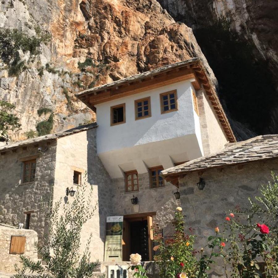 remembering this visit to the Sufi Tekke in Blagaj, Bosnia in 2016. “We made every living thing from water,” says the plaque at the site where the cold aquamarine water of the Buna flows. The Dervish lodge and monastery are set back against a rock face in the shadow of a towering cliff. When the world is too much I close my eyes and am back in that place of peace.